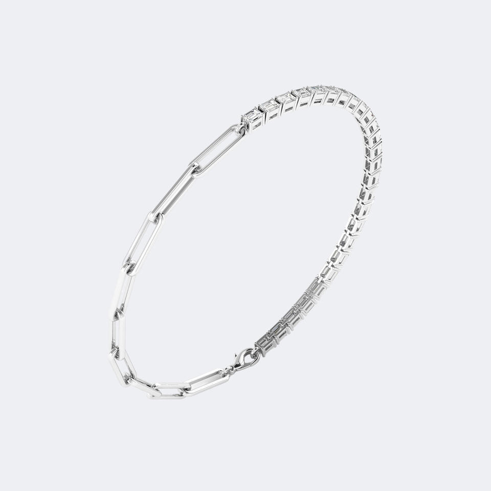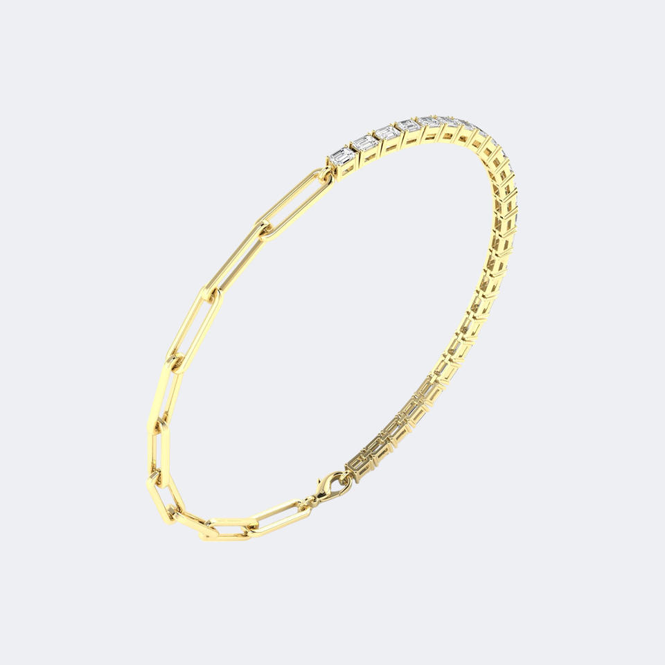 สร้อยข้อมือเทนนิสประดับเพชรทรงเหลี่ยมมรกต 2.60 กะรัต ผลิตในห้องปฏิบัติการ ทอง 14K ระดับความสะอาด VVS VS DEF รูปทรงบริลเลียนท์ ตัวล็อคแน่นหนา เครื่องประดับสุดหรู