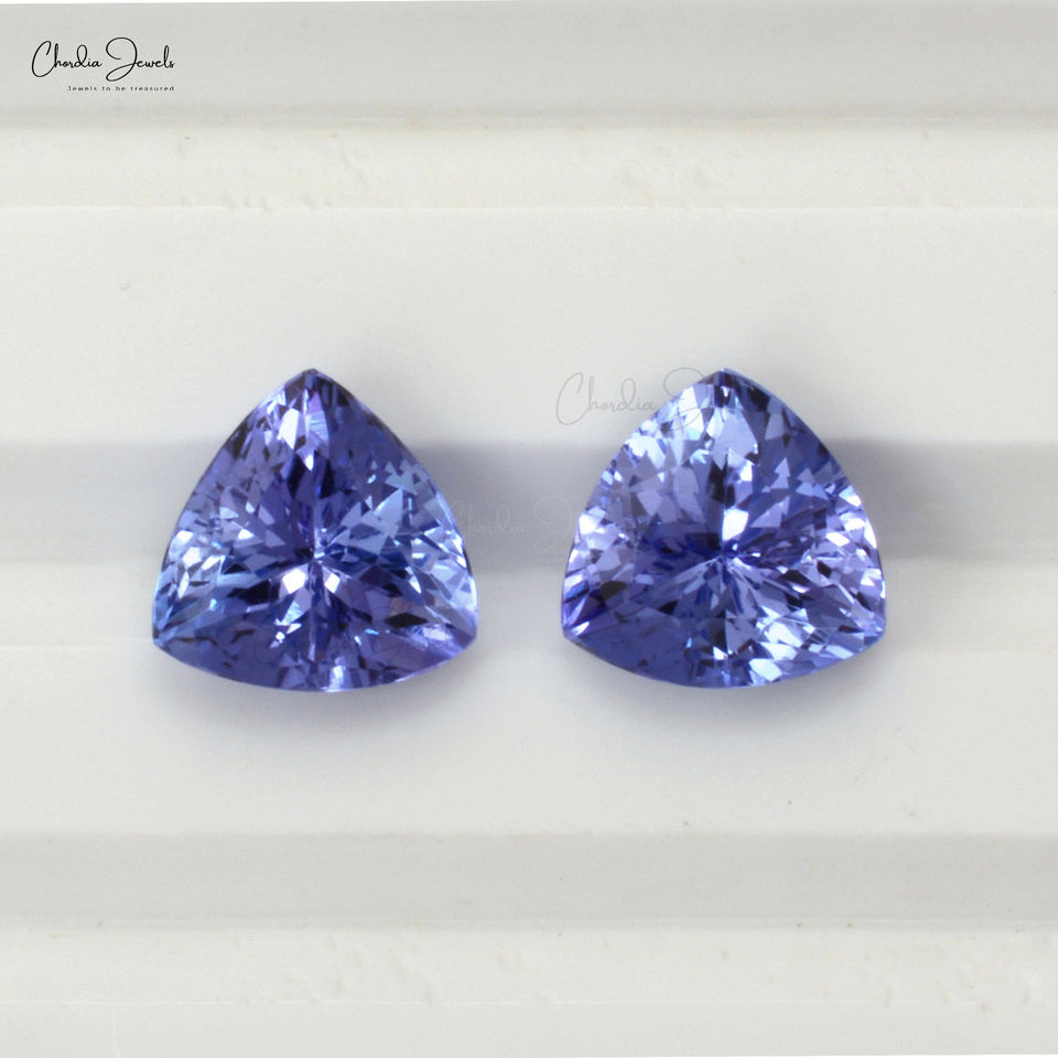 พลอยแทนซาไนต์สีน้ำเงินธรรมชาติ 2.61 กะรัต ขนาด 7x7 มม. รูปทรงทริลเลียนคัท คู่สำหรับทำต่างหู พลอยหลวมสำหรับทำเครื่องประดับ ขายส่ง