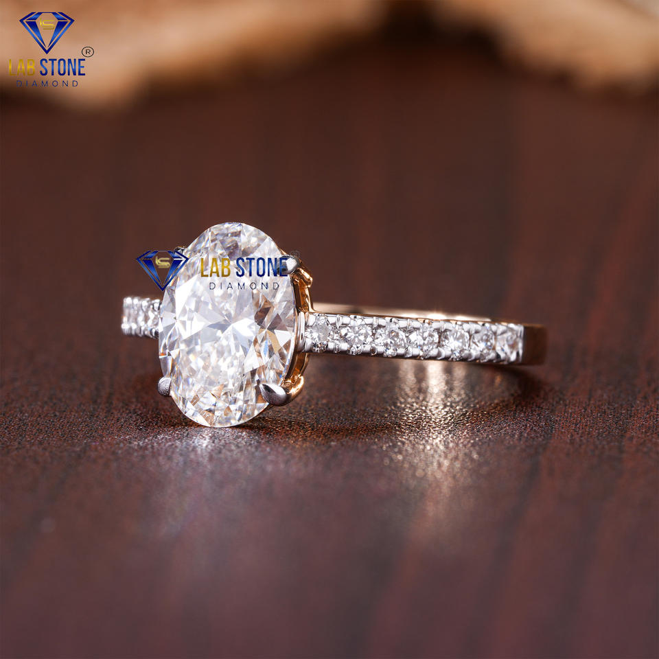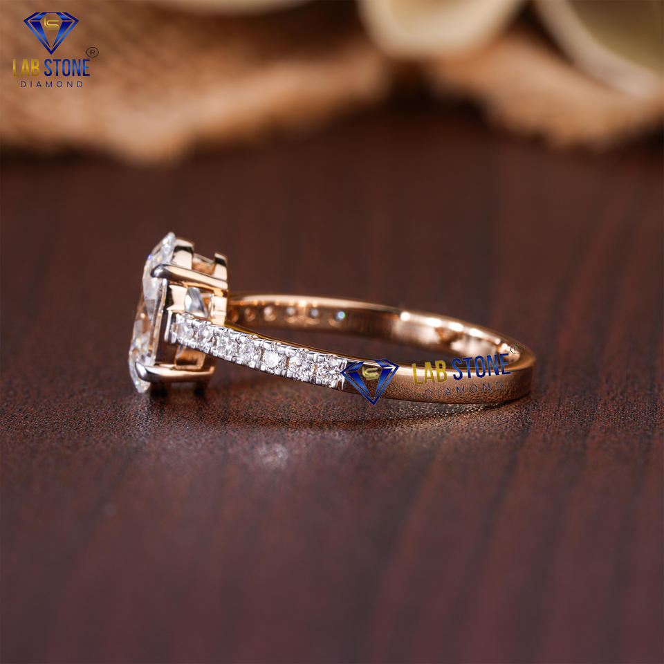 2.61 TDW แหวนเพชรรูปไข่และทรงกลมโรสโกลด์โดย Lab-Stone/ แหวนพร้อมสัมผัสของความคล้ําคล้ํา / สี EF-VS