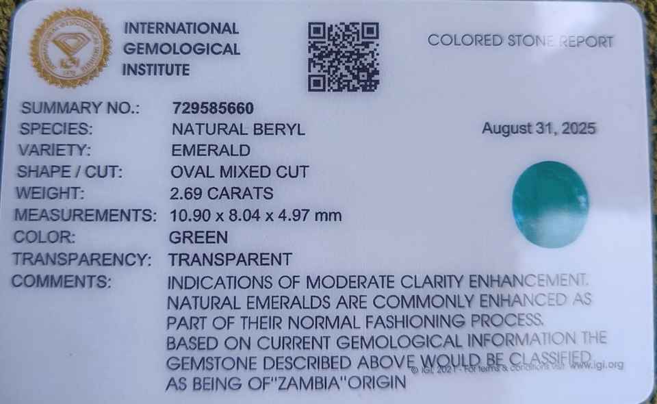 2.69 Carats Green Emerald From Zambian Loose Gemstone (3.25 Ratti)