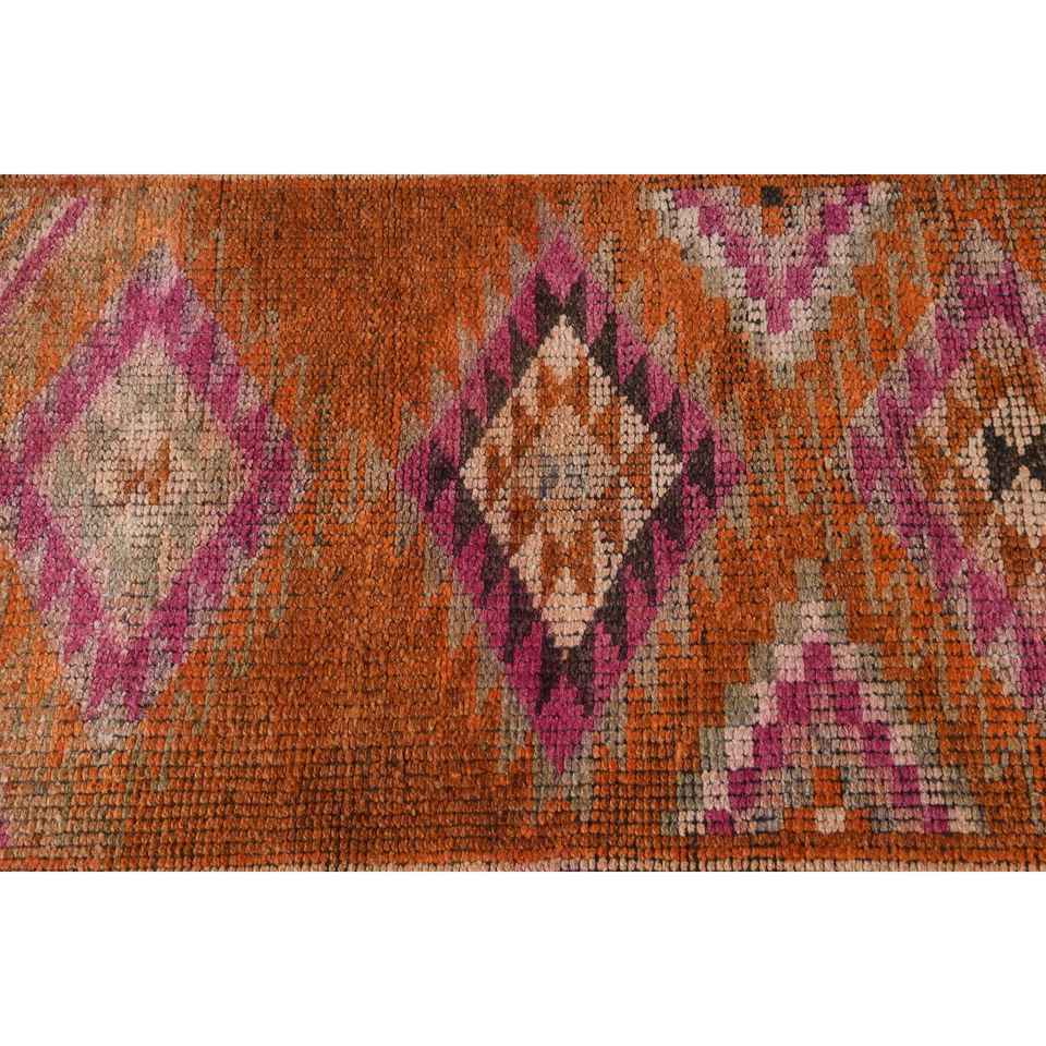 พรมวินเทจขนาด 2.6x12.1 ฟุต, พรมลายทางสไตล์ตุรกี, พรมขนสัตว์ลายสัตว์สีส้ม