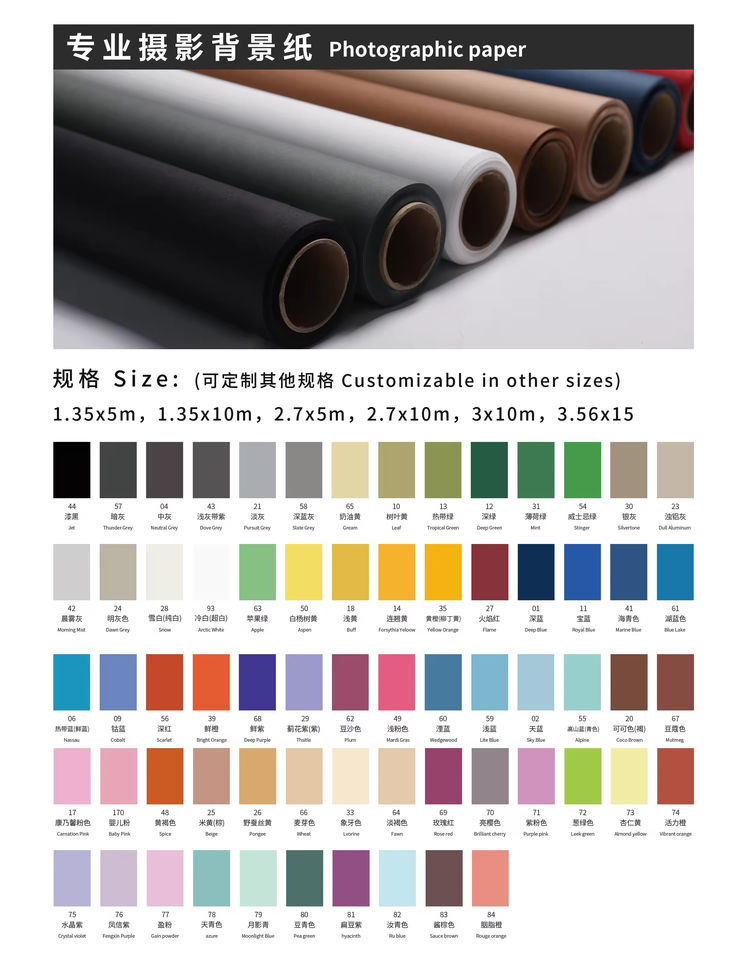 กระดาษฉากหลังถ่ายภาพแบบม้วน ขนาด 2.72*11 เมตร สำหรับสตูดิโอถ่ายภาพ สีพื้นย้อมสีแบบมิลล์ ไร้รอยต่อ ใช้เป็นพร็อพถ่ายภาพ