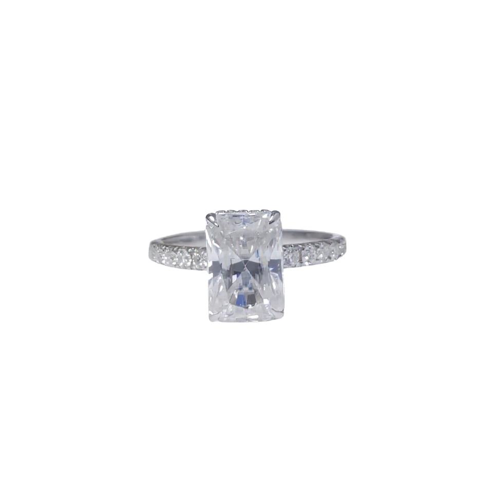 แหวนหมั้นสไตล์วินเทจคริสเตียนคลาสสิกประดับโมอิสซาไนต์ทรงเรเดียนท์คัท 2.75 กะรัต สำหรับผู้หญิง ตัวเรือนทองคำขาว 14K แท้ พร้อมวงแหวนแบบซ่อน