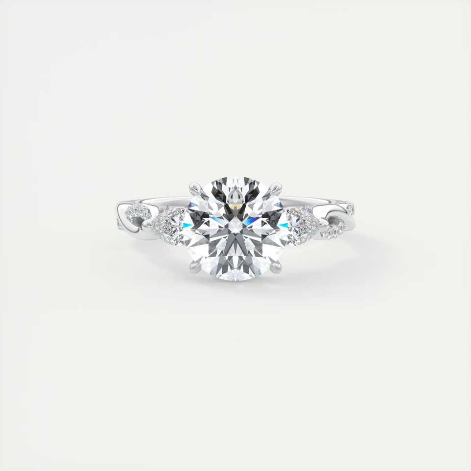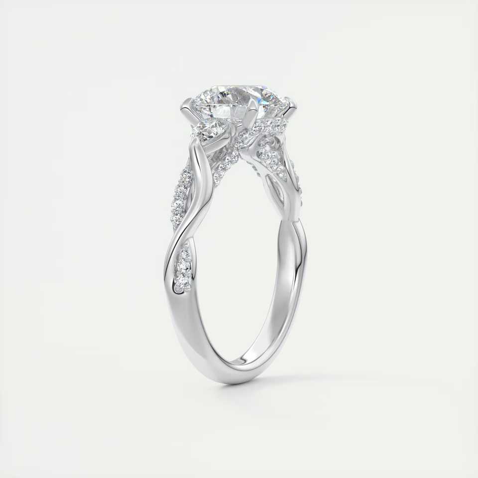 แหวนหมั้นเพชรทรงกลม 2.75 กะรัต เพชรเพาะเลี้ยงในห้องปฏิบัติการ ประดับเพชรแบบทวิสต์พาเว่ โซลิแทร์ ตัวเรือนทองคำขาว 14K