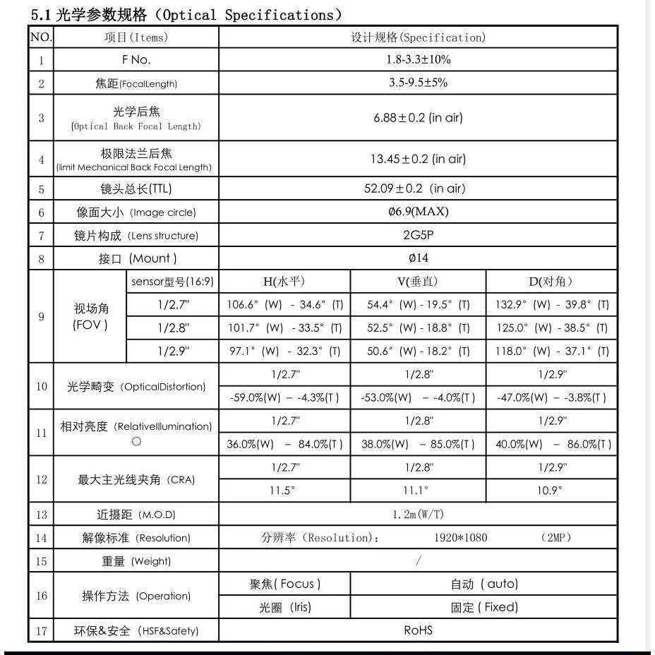 5MP ซูม5X 2.8-12มม. 1/2.7 ''ตัวยึด D14กล้อง CCTV แบบติดมอเตอร์โฟกัสแบบ varifocal ZOOM F1.4เลนส์