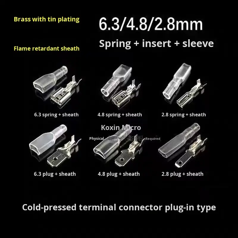 ขั้วต่อสายไฟแบบหุ้มฉนวนขนาด 2.8/4.8/6.3 มม. พร้อมตัวเรือนขั้วต่อ - ชุดขั้วต่อแบบกดเย็นทองแดงแท้