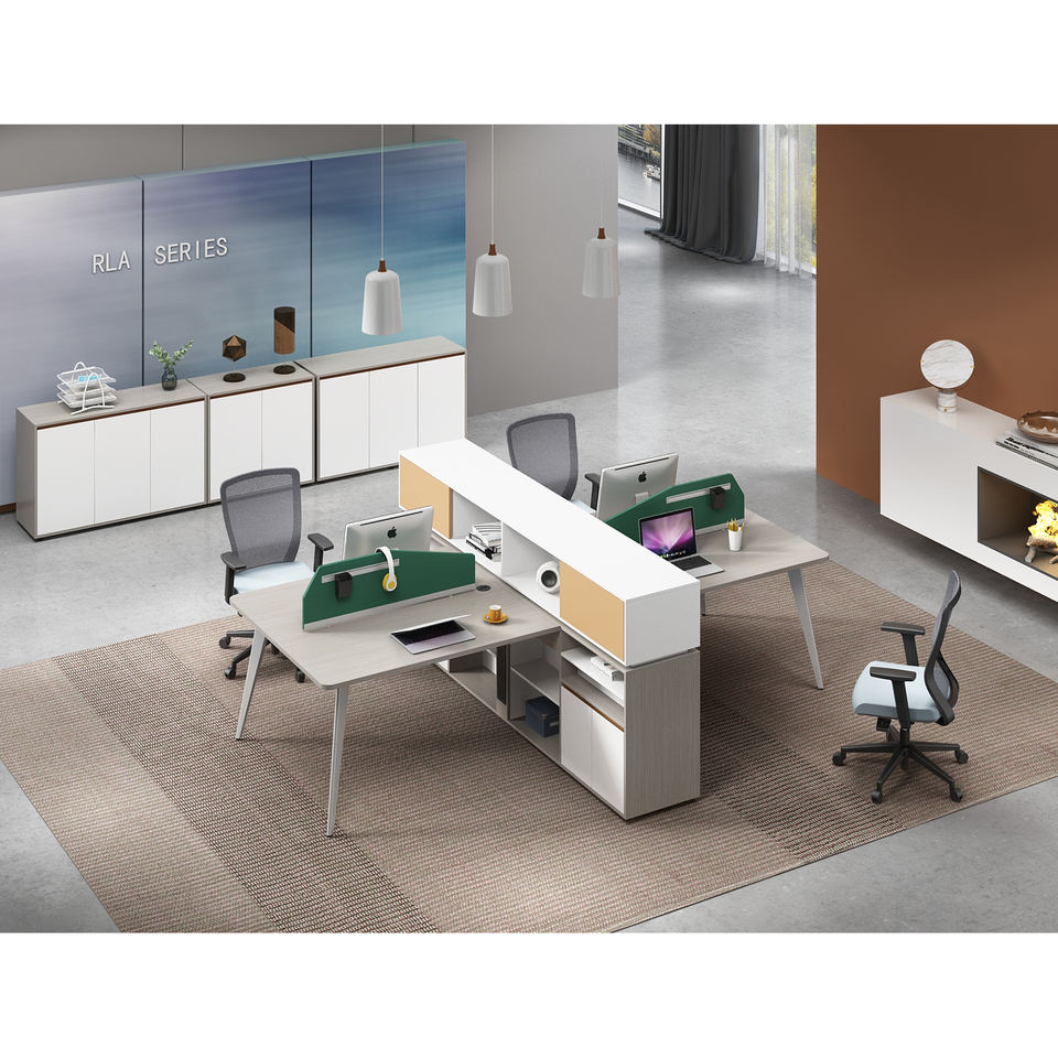 โต๊ะคอมพิวเตอร์แบบแยกส่วนปรับเปลี่ยนได้ 2-8 ที่นั่ง พร้อมแผงไม้ ดีไซน์สำหรับสำนักงานและพื้นที่ทำงานแบบคิวบิเคิล