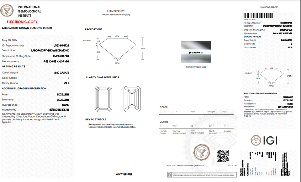 เพชรที่ปลูกในห้องแล็บซึ่งได้รับการรับรองจาก2.80ct IGI สีเขียวมรกต VS1ความชัดเจนหินในห้องทดลอง