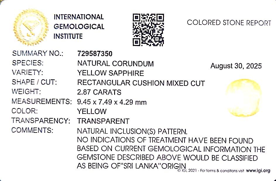 พลอยแซฟไฟร์สีเหลืองทรงรีธรรมชาติ 2.87 กะรัต จากศรีลังกา สำหรับทำเครื่องประดับและแหวน YSON-24