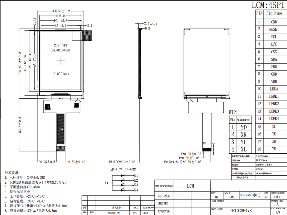 型号: OLC-TFT028F478 โอแอลซี-ทีเอฟที028เอฟ478