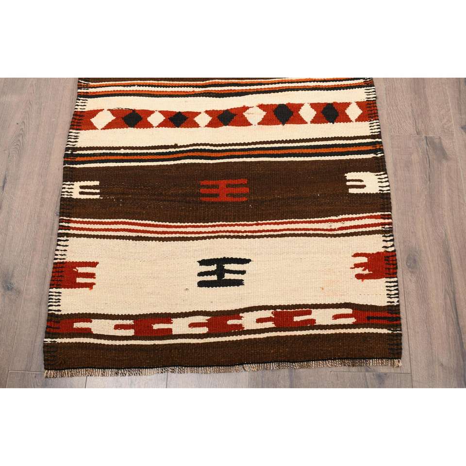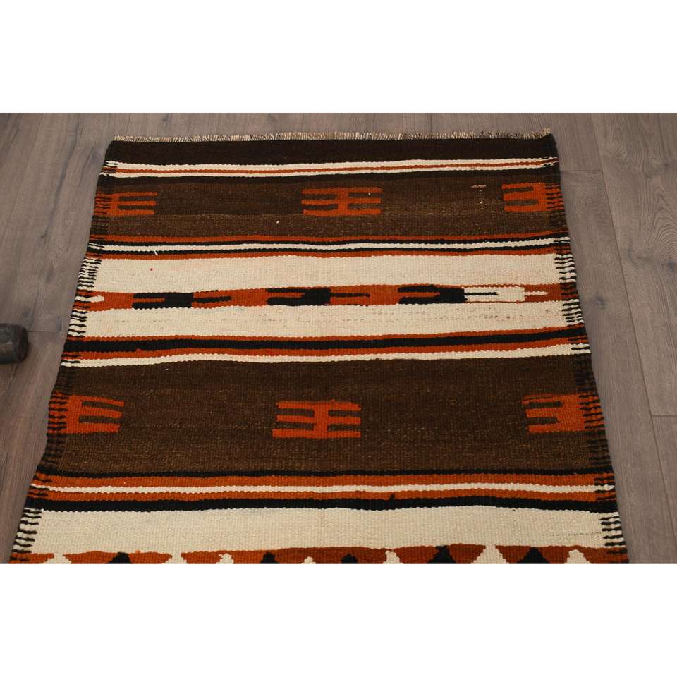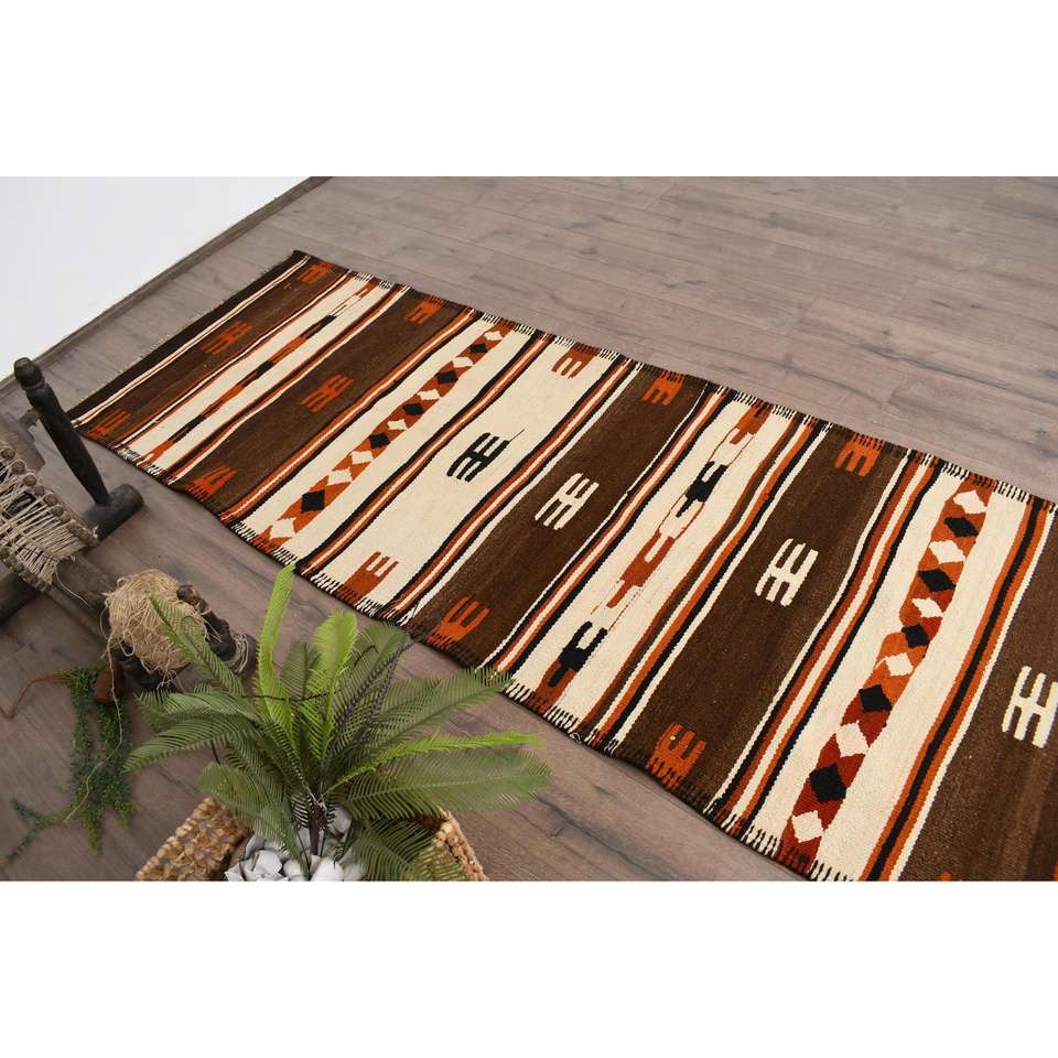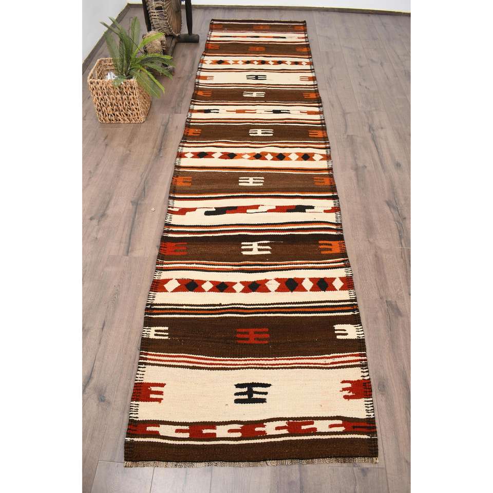 พรมคิลิมขนาด 2.8x12.2 ฟุต พรมตุรกีโบราณ พรมลายพรางสีน้ำตาลแดง