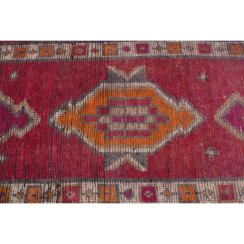 2.8x8.4 ft Runner Vintage Rug, Red Floral Turkish Rug