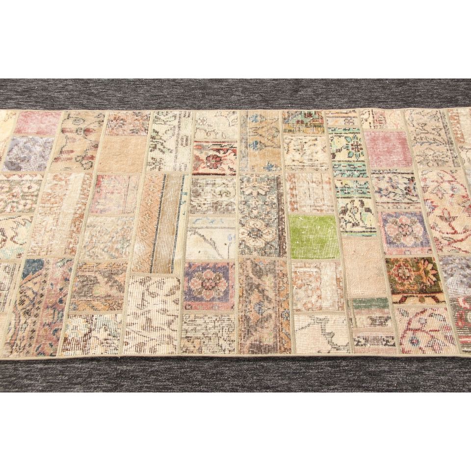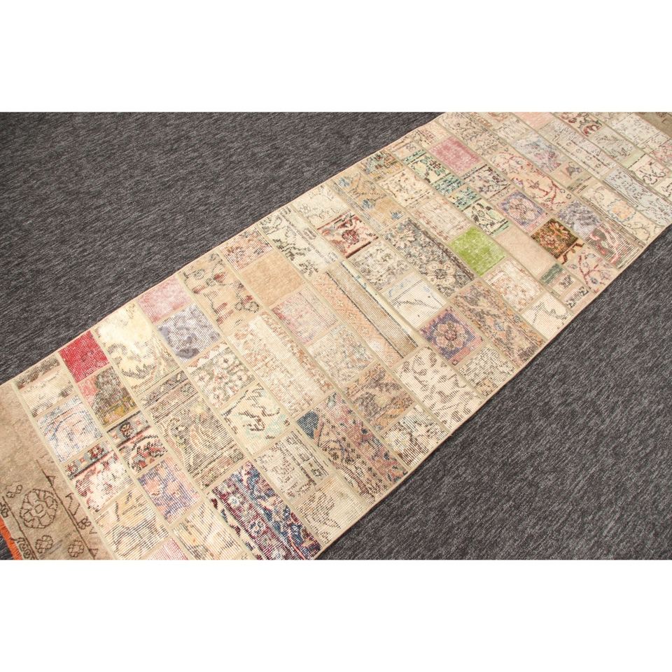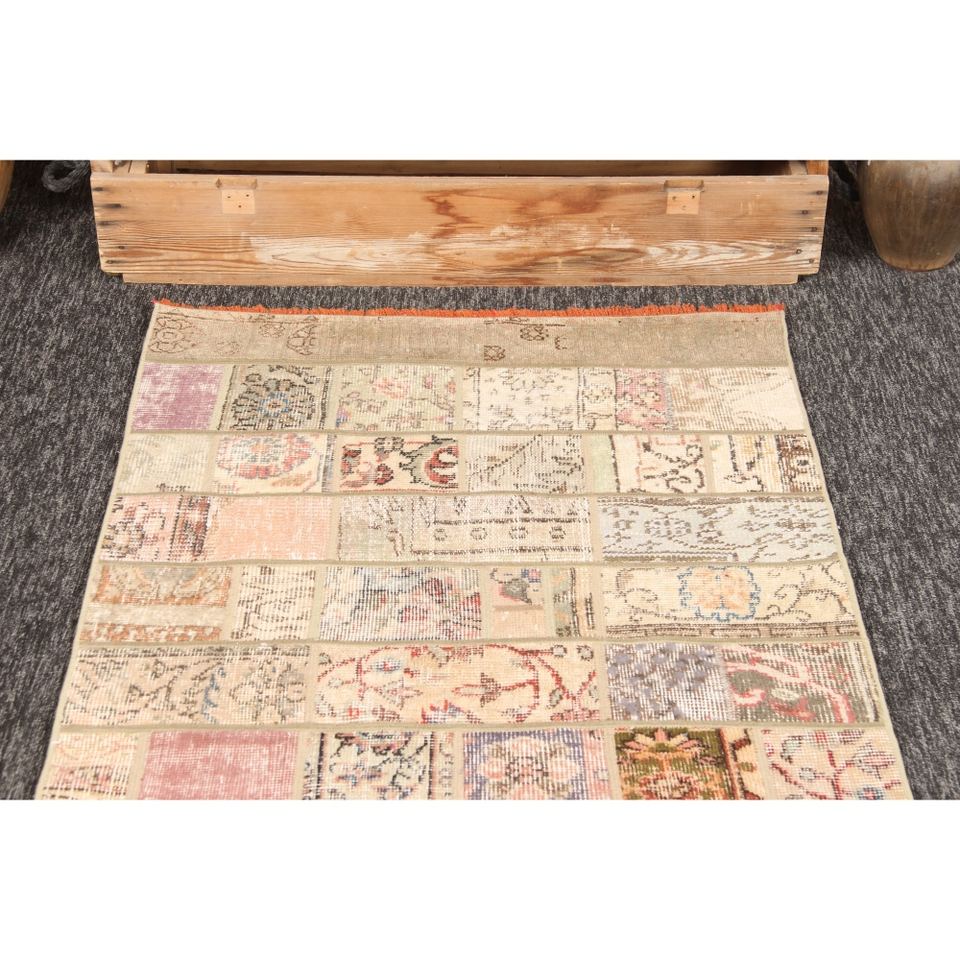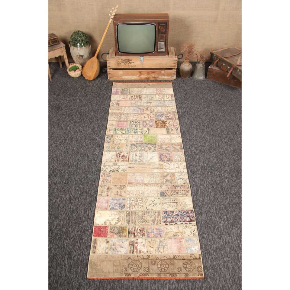 พรมตุรกีขนาดเล็ก 2.8x8.6 ฟุต พรมวินเทจ สีเบจลายเรขาคณิตสีรุ้ง พร้อมลวดลายดอกไม้