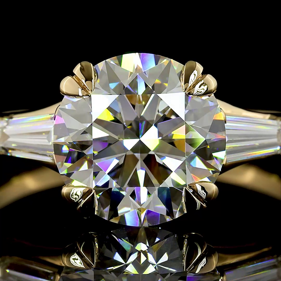 แหวนหมั้นเพชรทรงกลม 2.9 กะรัต แบบสามเม็ด ทองคำ 14K สีเหลือง ประดับเพชรเลี้ยงในห้องปฏิบัติการ งานฝีมือ เครื่องประดับเจ้าสาวชั้นดี