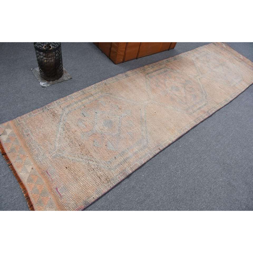 พรมขนาด 2.9x10.9 ฟุต, พรมวินเทจ, พรมขนสัตว์สีน้ำตาลตุรกีลายต้นไม้และพืช