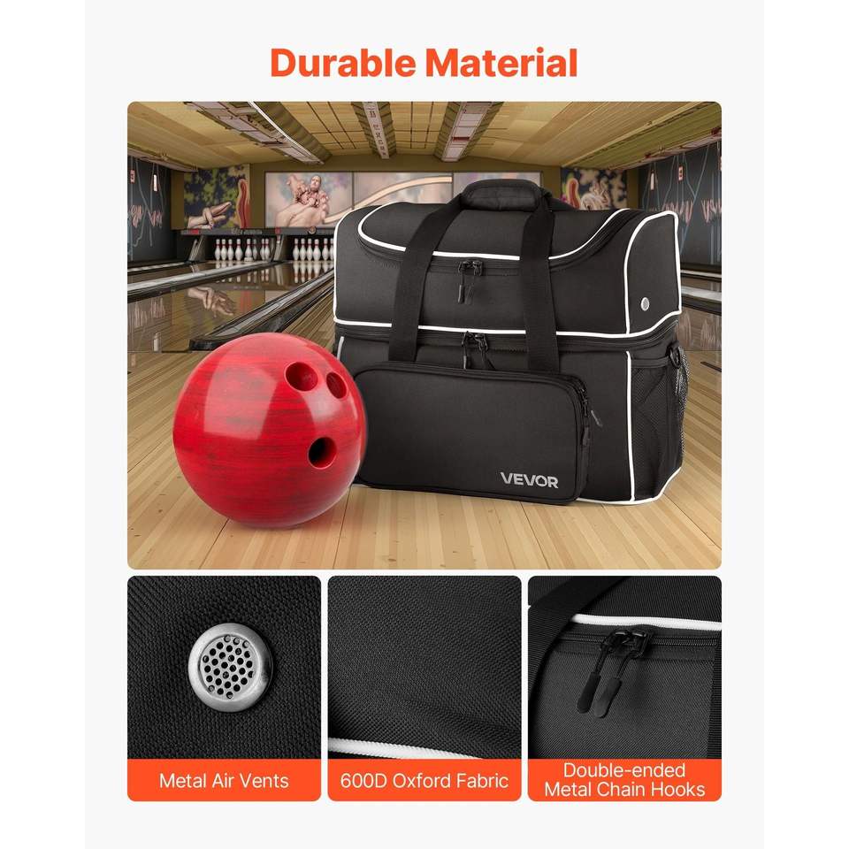 กระเป๋าใส่ลูกโบว์ลิ่งแบบมีล้อ 2 ลูก 4 ล้อ พร้อมช่องแยกสำหรับรองเท้าขนาดไม่เกิน US ไซส์ 16