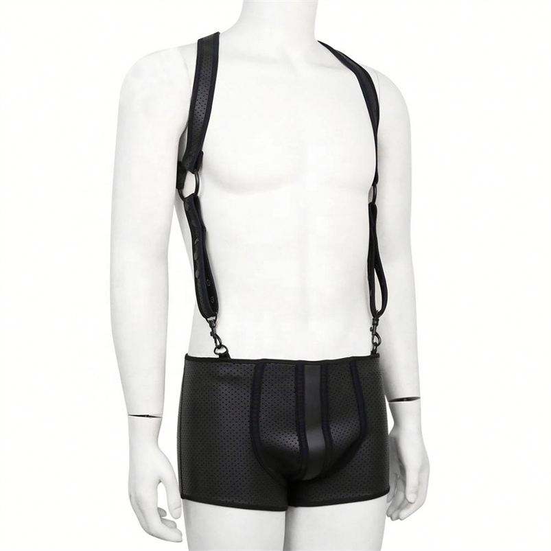 Yeas ชุดชั้นในทาสหน้าอกนีโอพรีนสำหรับผู้ชายชุดชั้นในเปิดตูดชุดชั้นในด้านหลัง jockstrap 2ชิ้น