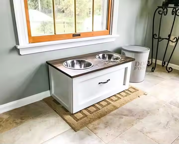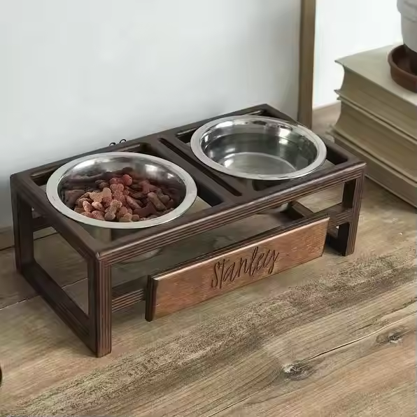สถานีให้อาหารสุนัข2ชามพร้อมลิ้นชัก-ชามอาหารสุนัขเลี้ยงและเครื่องให้อาหารอัตโนมัติโดยงานฝีมือเสี้ยว