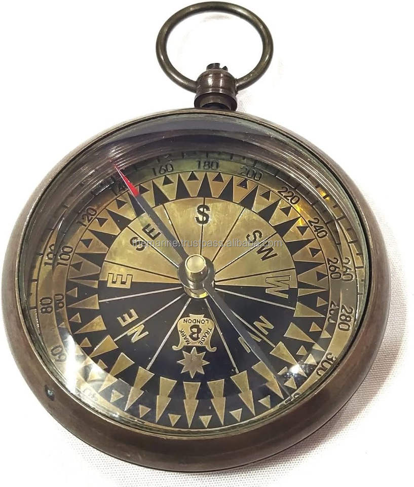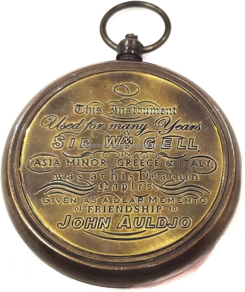 เข็มทิศพกพาแบบแบนโบราณทำจากทองเหลืองขนาด 2 นิ้ว พร้อมกล่องไม้ ของขวัญสำหรับนักเดินเรือ