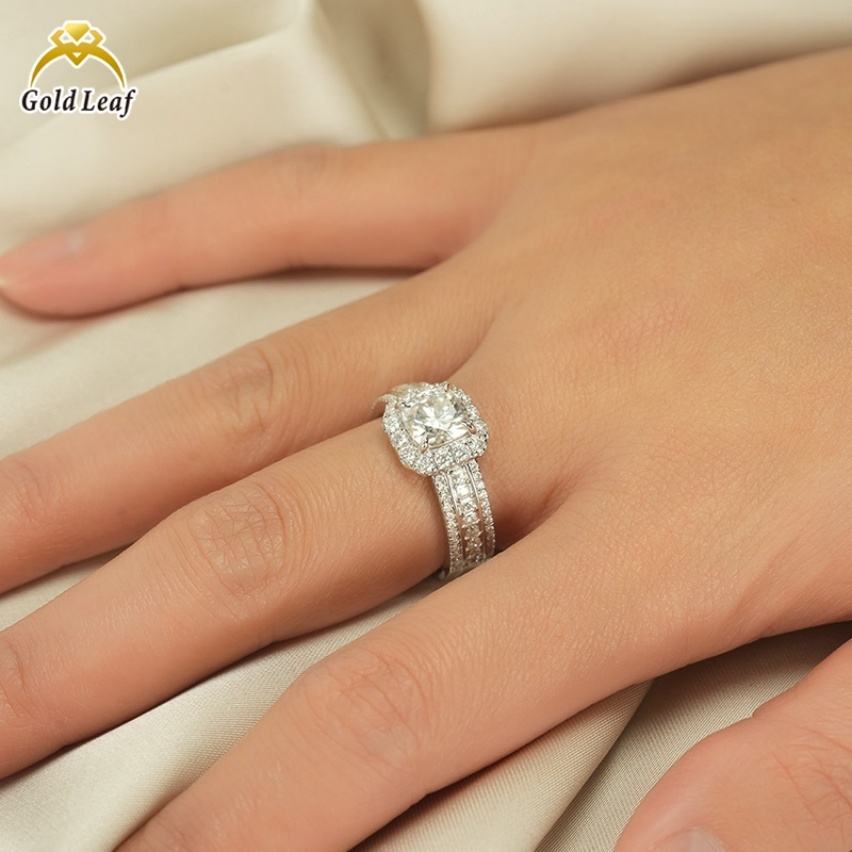 แหวนเพชรทรงคุชชั่น 2 กะรัต เพาะเลี้ยงในห้องปฏิบัติการ พร้อมใบรับรอง IGI ทองคำแท้ ชุบทองคำแท้ สำหรับผู้หญิง