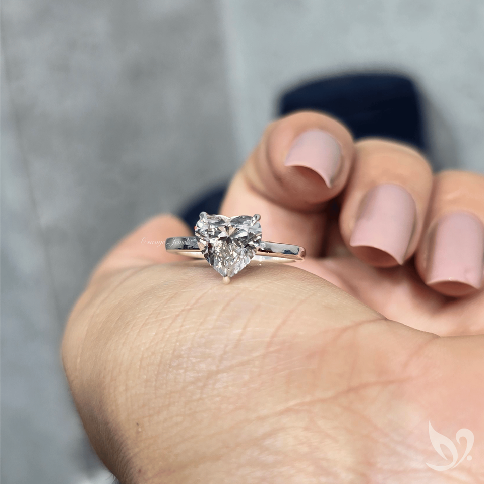 แหวนเพชรทรงหัวใจ 2 กะรัต เพชรเพาะเลี้ยงในห้องปฏิบัติการ ตัวเดียว ประดับบนทองคำแท้ 18K | เครื่องประดับหมั้นสำหรับผู้หญิงที่ได้รับการรับรองจาก IGI