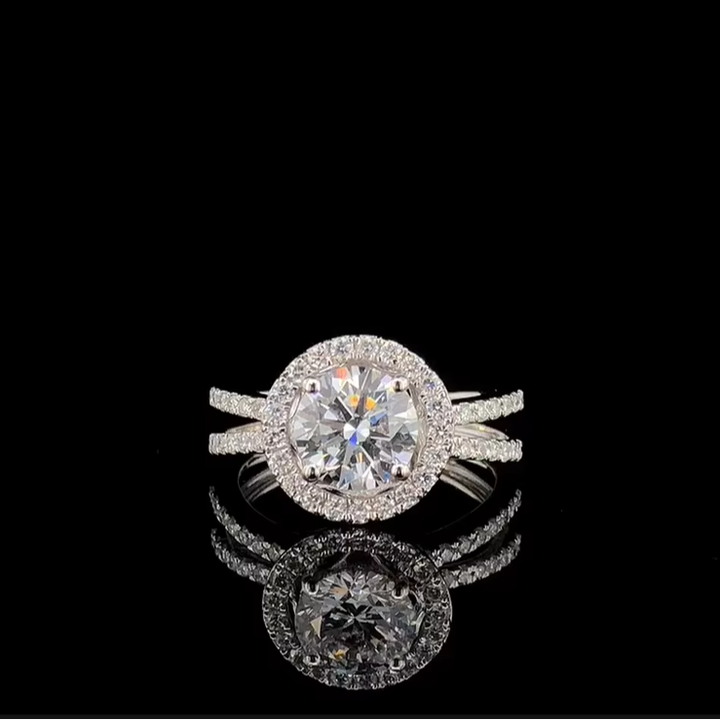 แหวนหมั้นเพชรทรงกลม 2 กะรัต ผลิตในห้องปฏิบัติการ ทองคำแท้ 14K รับรองโดย IGI พร้อมวงแหวนแบบ Halo