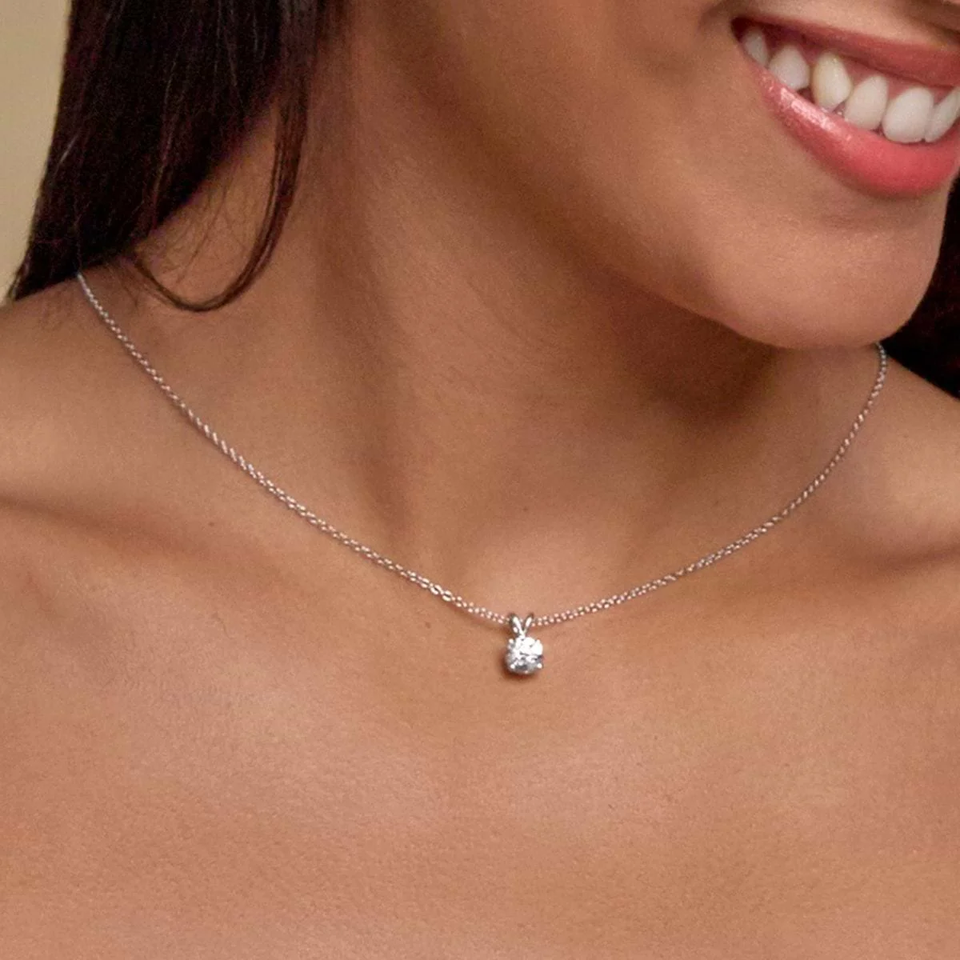 จี้เพชรทรงกลม 2 กะรัต แบบแยกชิ้น พร้อมสร้อยปรับระดับได้ สร้อยคอระยิบระยับหรูหรา ของขวัญสำหรับผู้หญิง