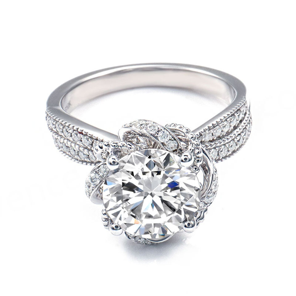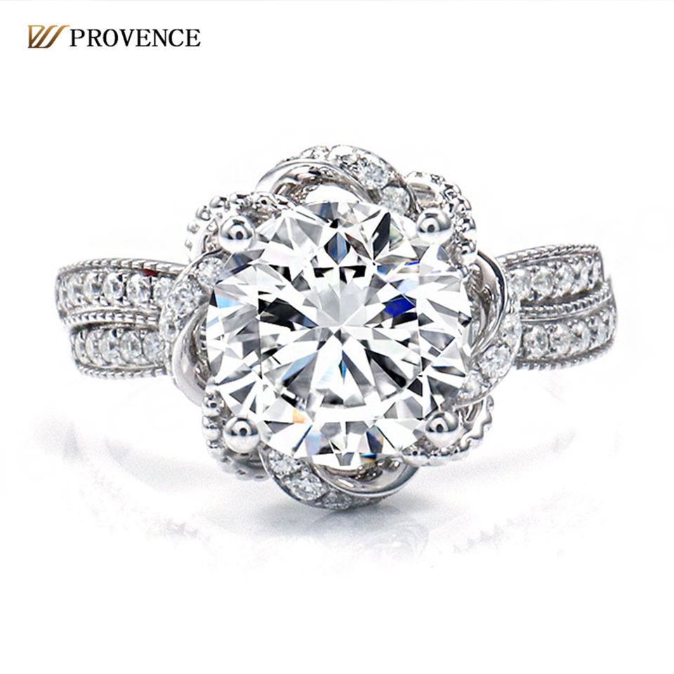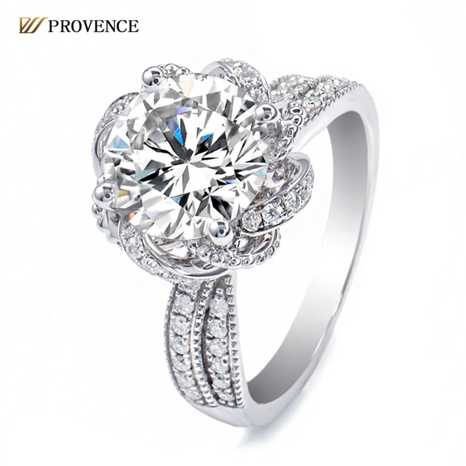 แหวนเพชรโมอิสซาไนต์ 2 กะรัต สี D ความสะอาด VVS ขนาด 9*9 มม. แหวนแฟชั่นเครื่องประดับ แหวนทองคำขาวแท้ 18k ทรงกลมคลาสสิกสำหรับผู้หญิง