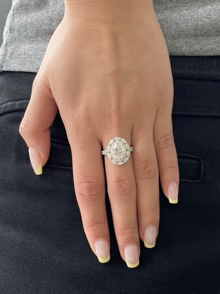 แหวนเพชรรูปวงรี2กะรัต VVS1สำหรับผู้หญิง14K แหวนแต่งงานแบบแยกก้านสีทองขาว