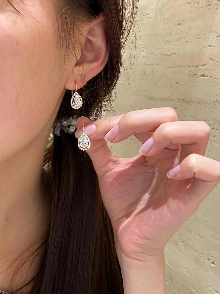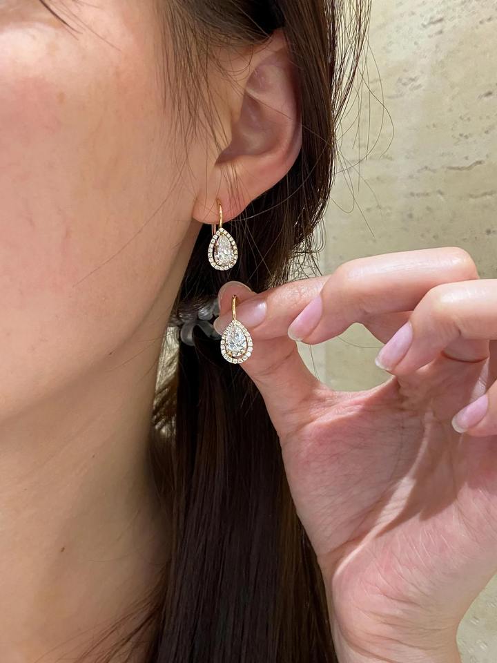 ต่างหูเพชรทรงลูกแพร์ 2 กะรัต เพชรเลี้ยงในห้องปฏิบัติการ ทองคำแท้ 14K เพชรลอยตัว ดีไซน์เรียบหรู ของขวัญเครื่องประดับสุดหรู