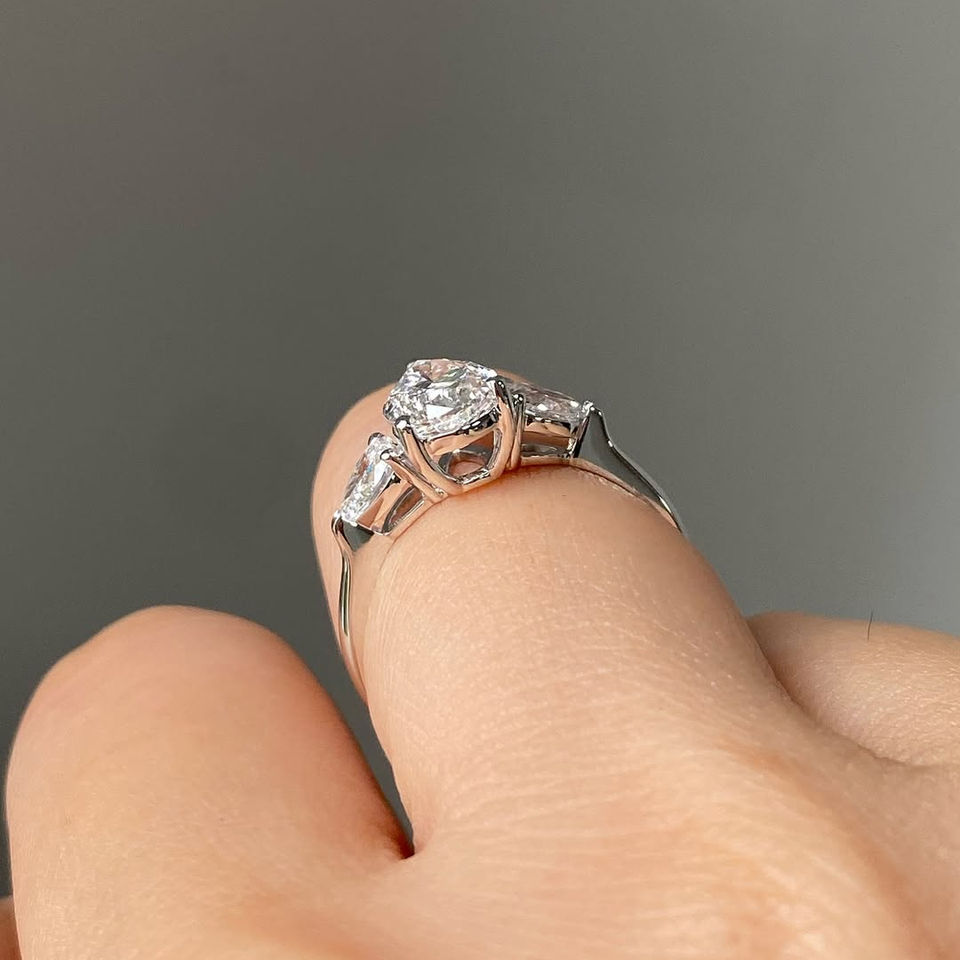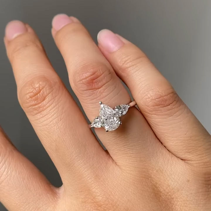 แหวนเพชรทรงลูกแพร์ 2 กะรัต เพาะเลี้ยงในห้องปฏิบัติการ แหวนสามเม็ด ทอง 14K แหวนหมั้น ดีไซน์หรูหรา คลาสสิก เหนือกาลเวลา