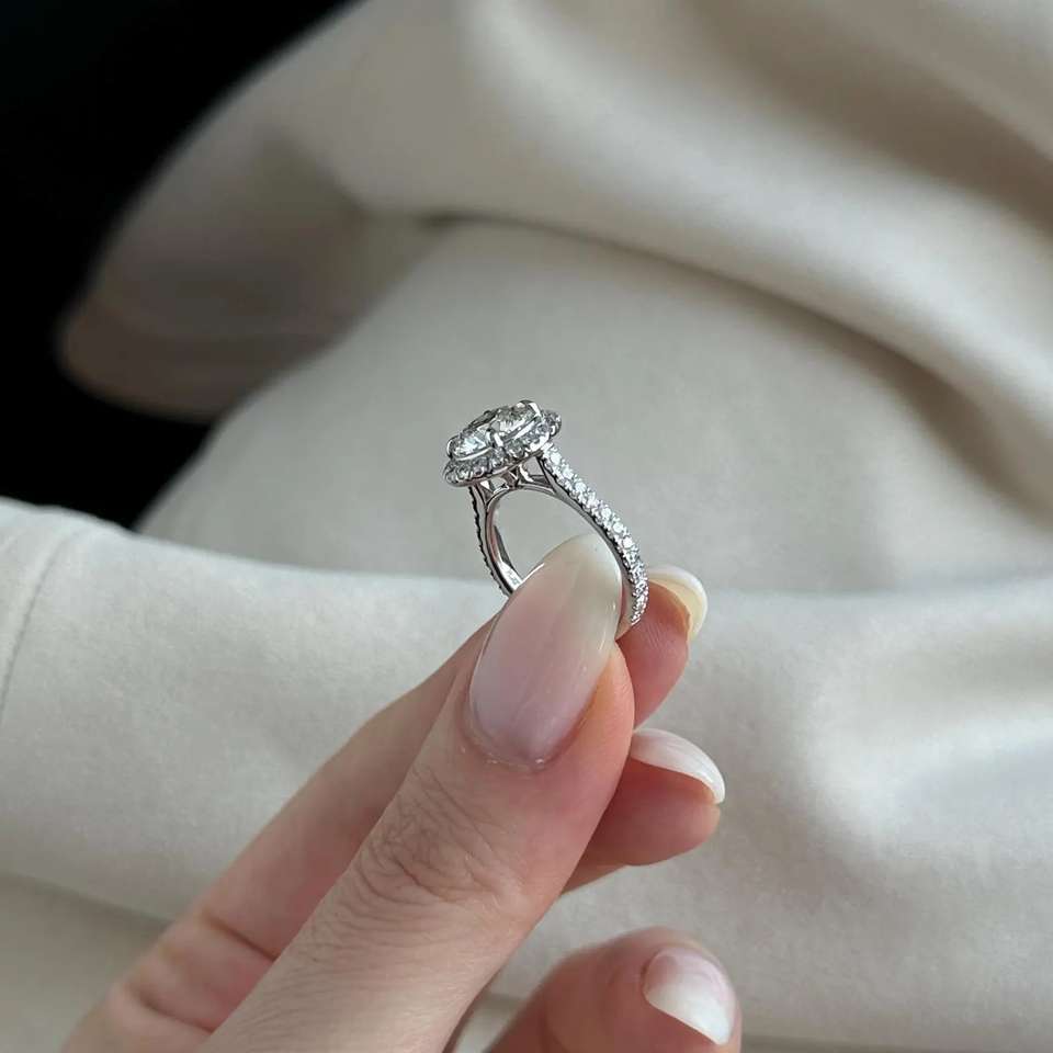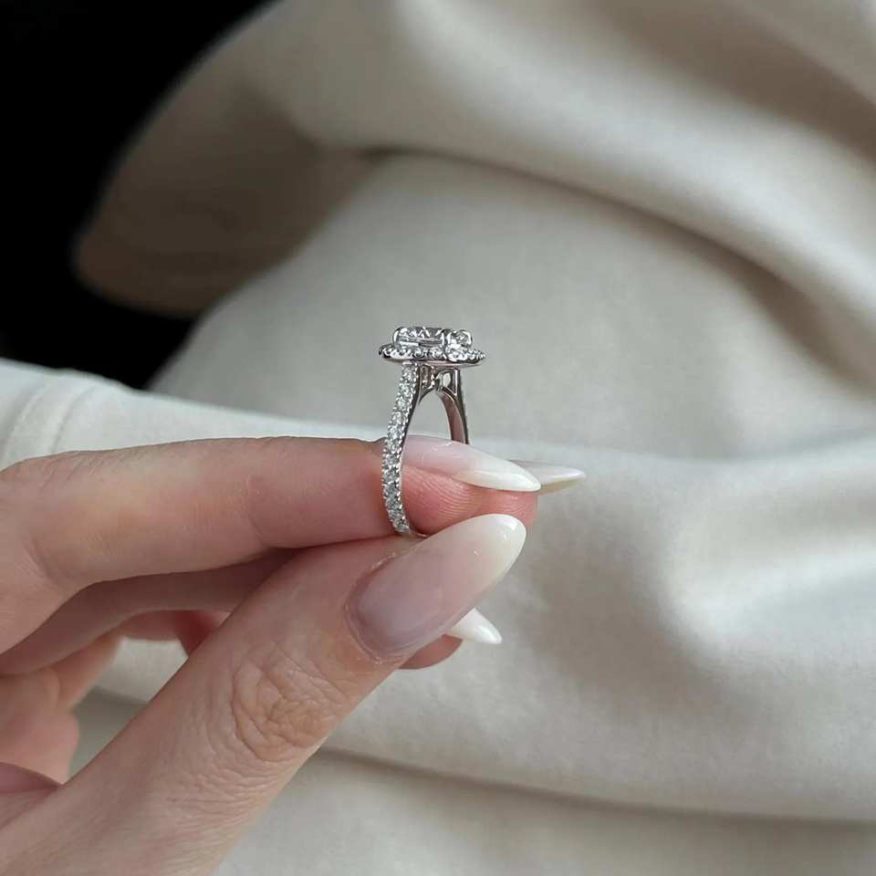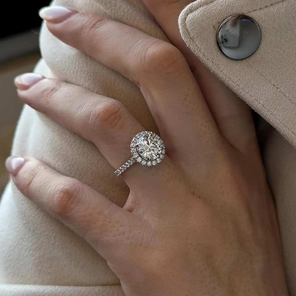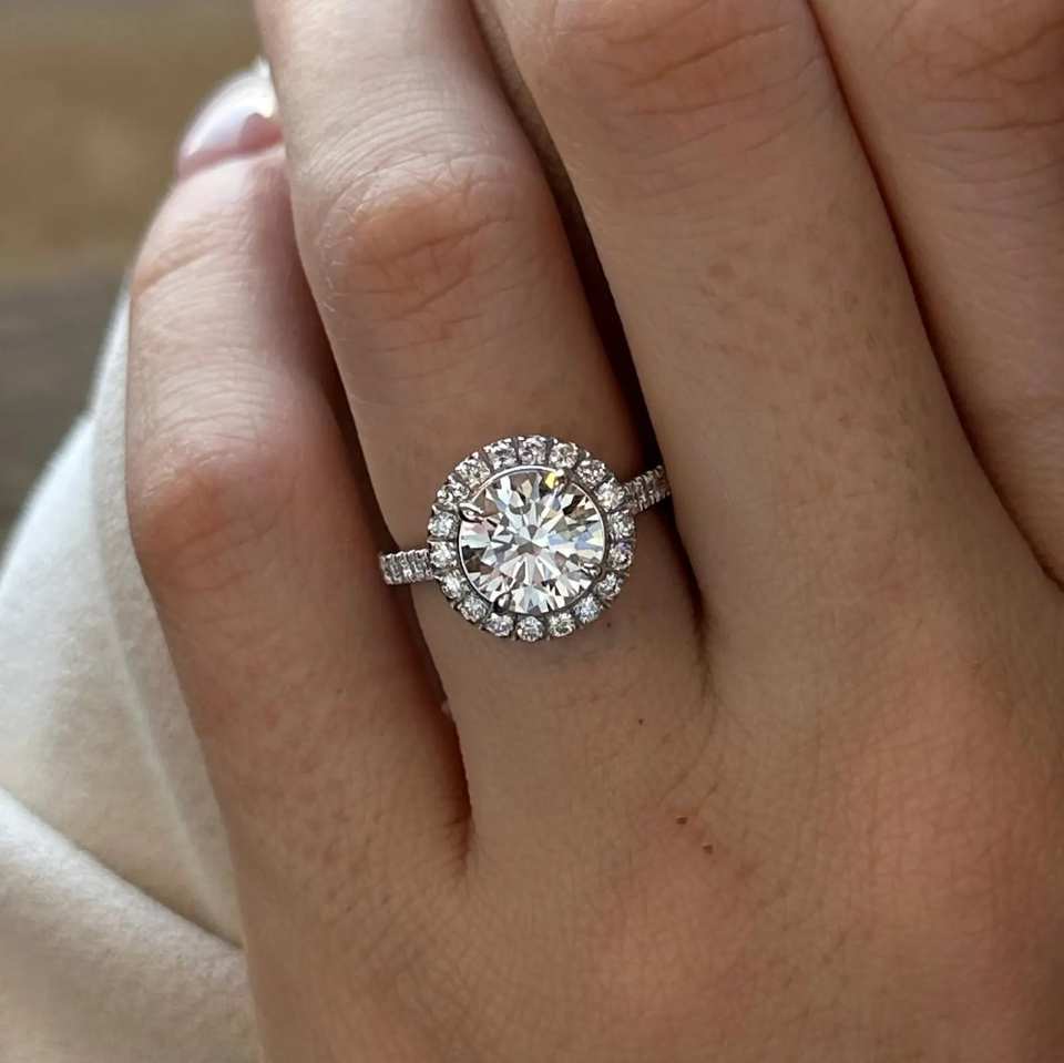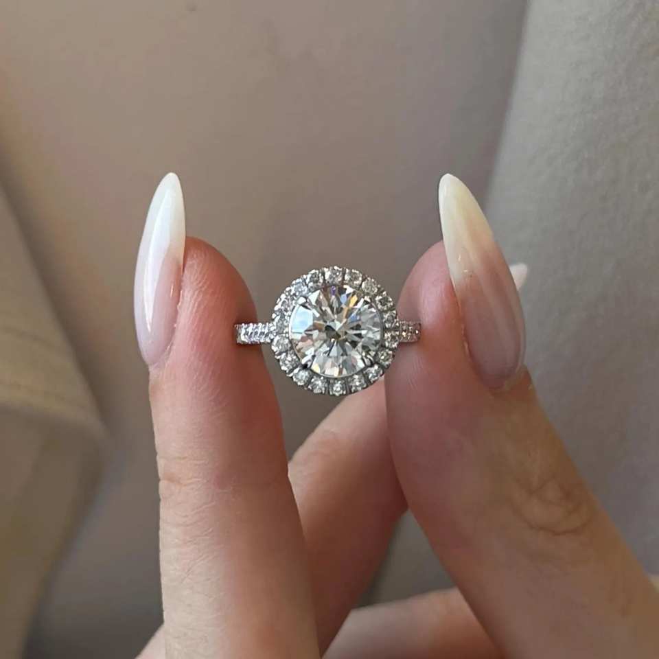 แหวนเพชรทรงกลมประกายเพชร2กะรัต/2ct D VVS2ห้องปฏิบัติการ/แหวนขอแต่งงานทองคำขาว14K หรือ18K