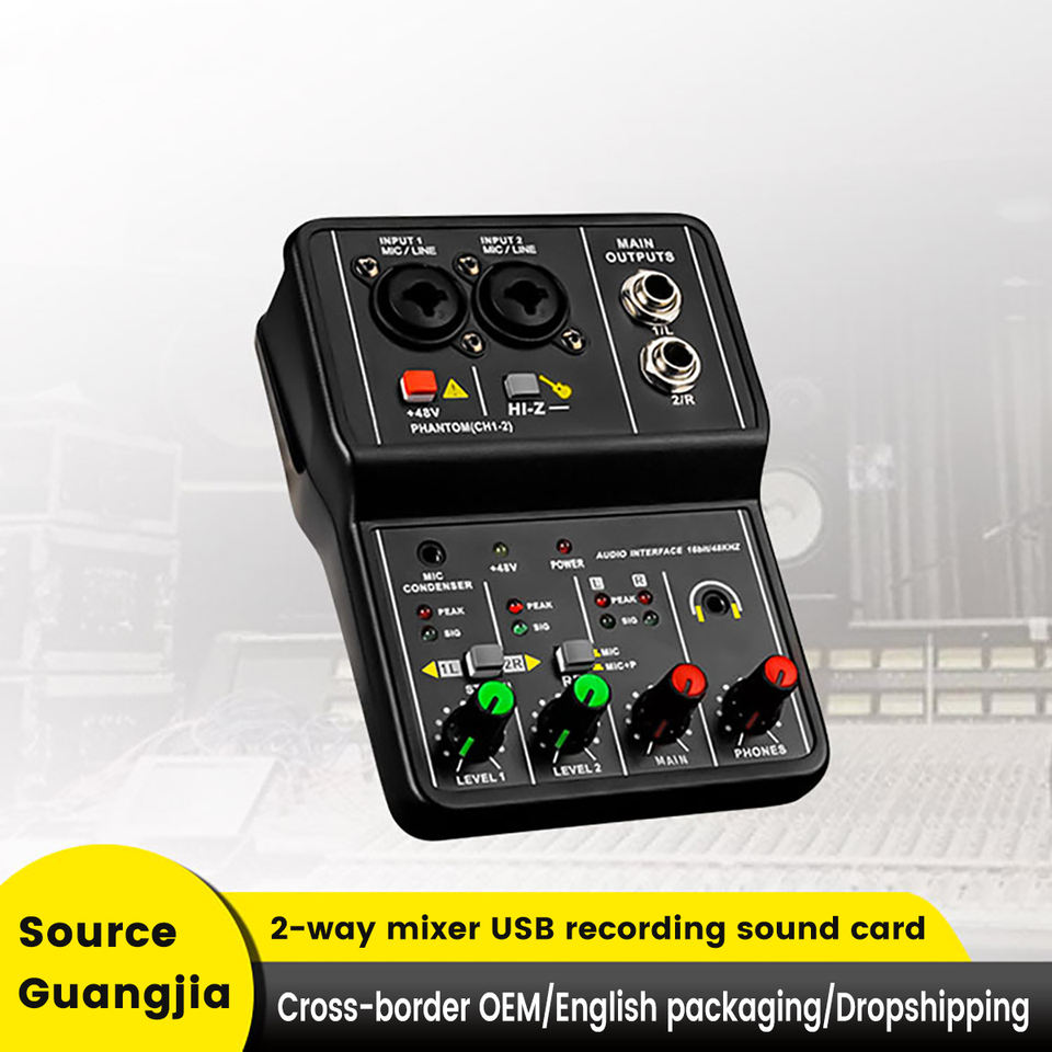 มิกเซอร์เสียง 2 ช่อง USB สำหรับดนตรีสด คาราโอเกะ พอดแคสต์ พร้อมฟังก์ชันเล่นและบันทึก MP3