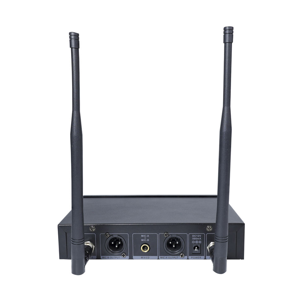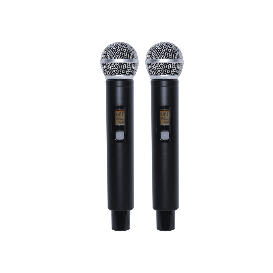 ไมโครโฟนไร้สาย UHF แบบไดนามิก 2 ช่อง สำหรับคาราโอเกะ KTV การแสดงสด และบนเวที