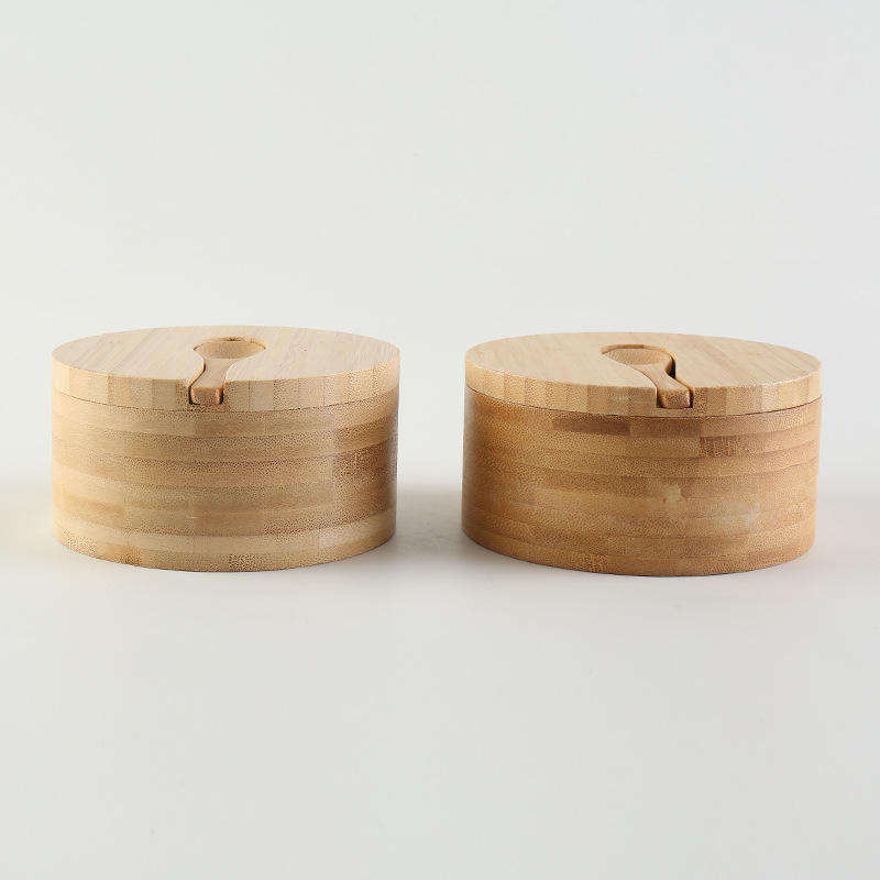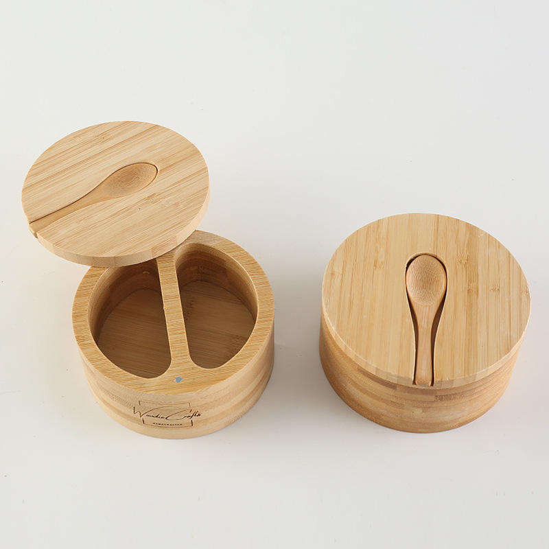 กล่องใส่เครื่องเทศไม้ไผ่แบบคลาสสิก 2 ช่อง ขนาดเล็ก เป็นมิตรกับสิ่งแวดล้อม สำหรับเก็บพริกไทย เกลือในครัว พร้อมช้อนไม้