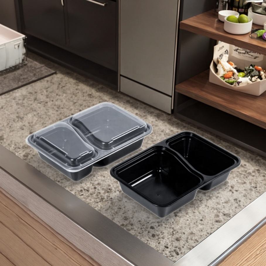 กล่องข้าวเบนโตแบบใช้แล้วทิ้ง 2 ช่อง สำหรับเข้าไมโครเวฟ พลาสติกพับได้ สำหรับเตรียมอาหาร ใส่อาหาร กล่องอาหารกลางวัน