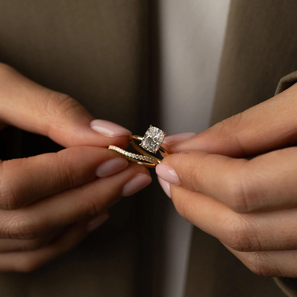 แหวนเพชรโมอิสขนาด14K/18K / 22K ทรงยาว2 CT สำหรับผู้หญิง