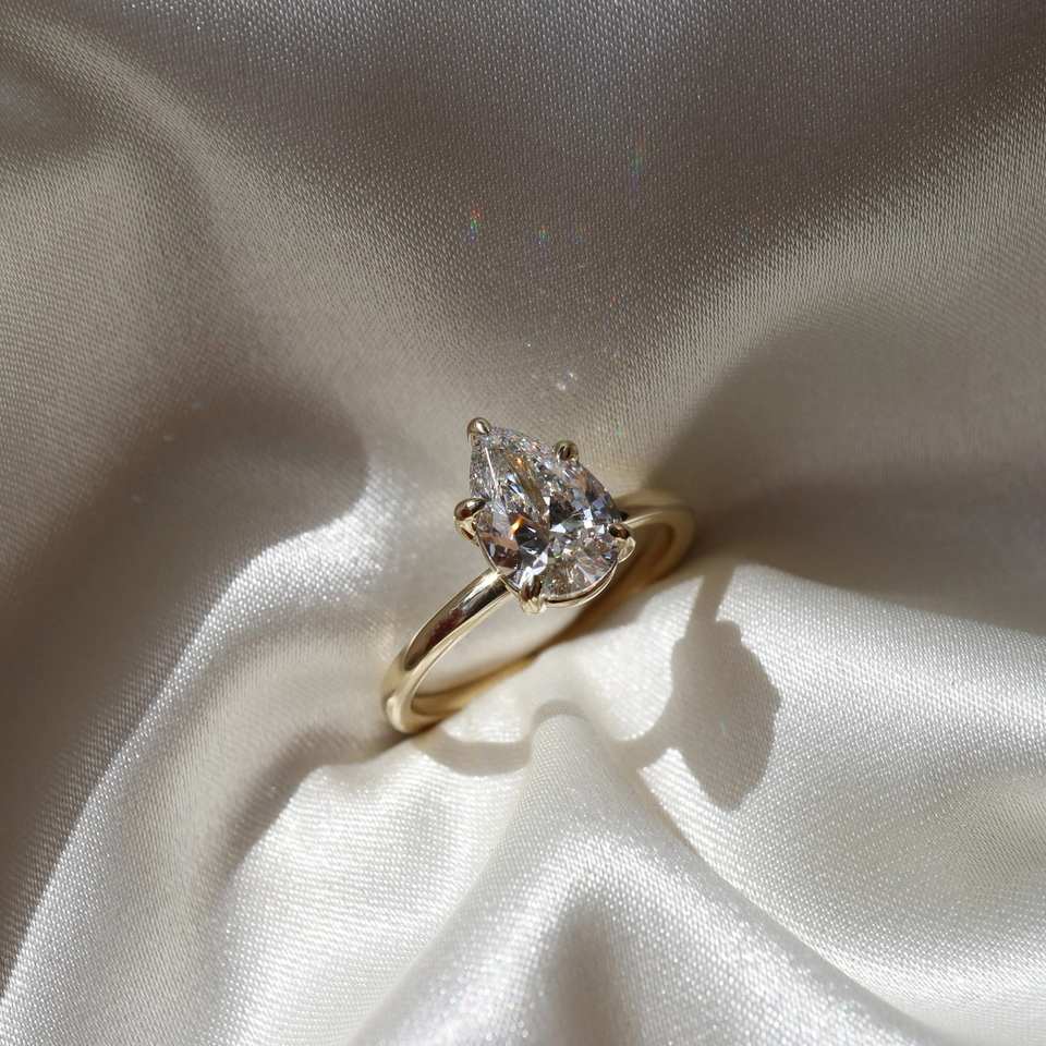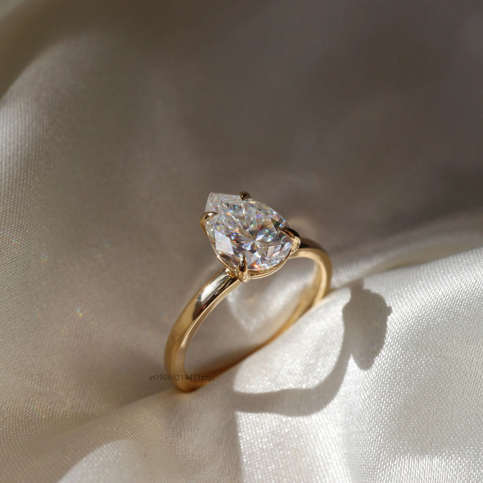 แหวนหมั้นเพชรโมอิสยาว2 CT วงแหวนเพชรโมอิสซาไนต์ทรงลูกแพร์รูปวงแหวนเพชรโมอิส925สีเงินสเตอริง