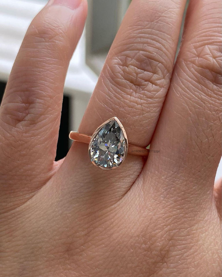 แหวนหมั้นเพชรเม็ดยาว2 CT ประดับลูกแพร์สีเทาสำหรับ VVS1สีเงินสเตอริงของขวัญสำหรับผู้หญิง925