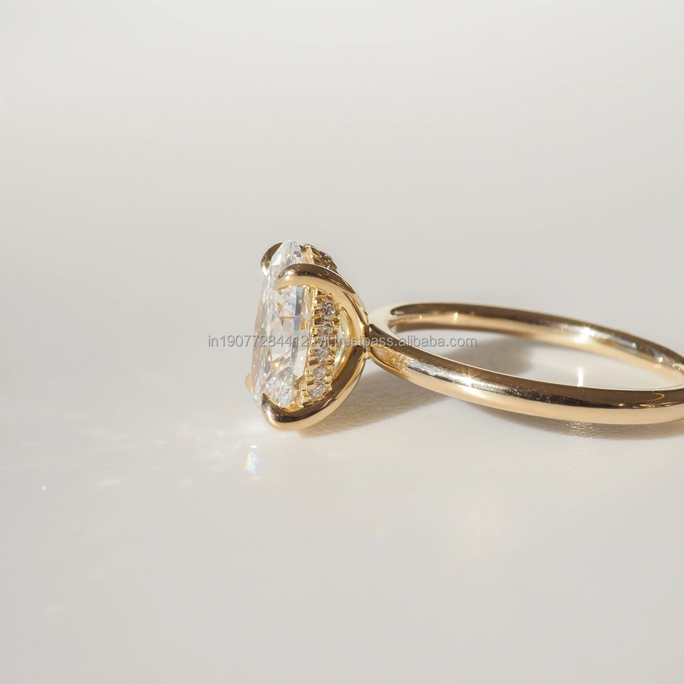 แหวนแต่งงานเพชรทรงรี 2 กะรัต รับรองโดย IGI เพชรเพาะเลี้ยงในห้องปฏิบัติการ ดีไซน์แบบมินิมอล ประดับด้วยวงแหวนรอบเพชรแบบซ่อน ทองคำขาว 14k สำหรับผู้หญิง