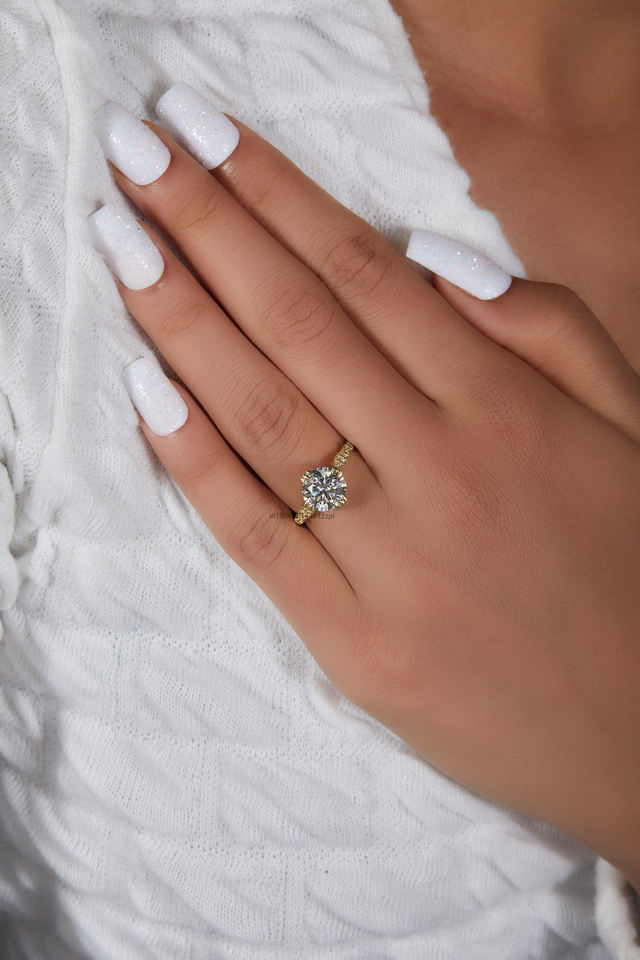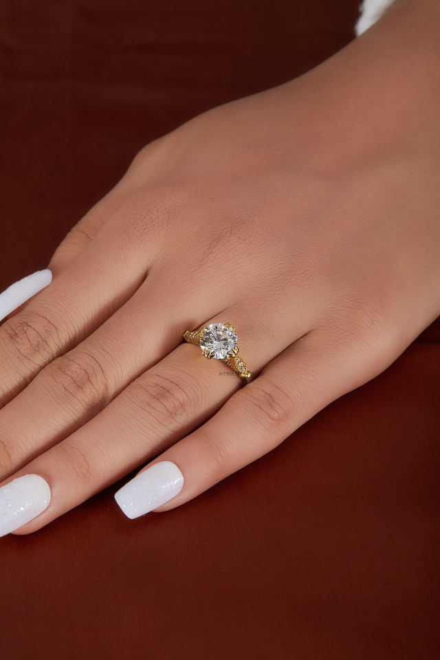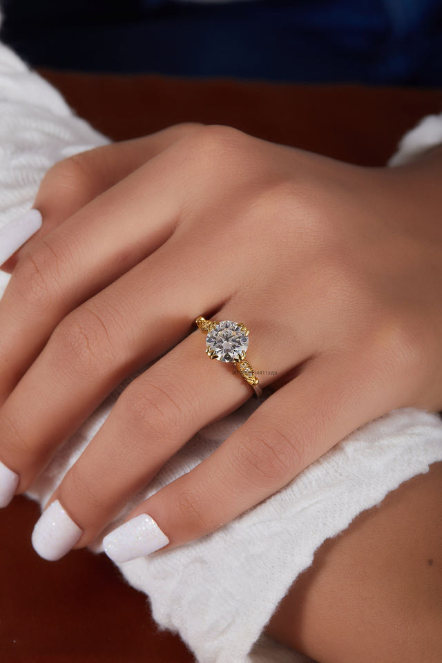 แหวนหมั้นเพชรโมอิสทรงกลม2 CT สีทอง18K สำหรับผู้หญิง