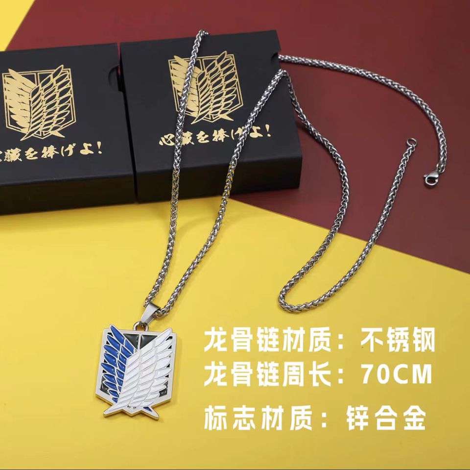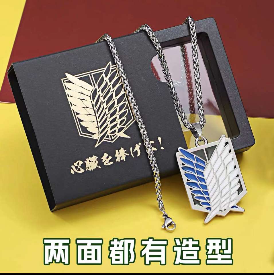 สร้อยคอจี้โลหะโจมตีชาวเชี่ยน2แบบพร้อมกล่องของขวัญคอสเพลย์ตัวละครคอสเพลย์สร้อยคออนิเมะผู้ชายผู้หญิง