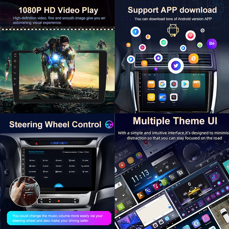 พอร์ตAUX, กล้องสำรอง, มีบลูทูธ, GPS ในตัว, DVR, FM Transmitter, เครื่องเล่น MP3 / MP4, เครื่องรับวิทยุ, ย้อนกลับAid, หน้าจอสัมผัส