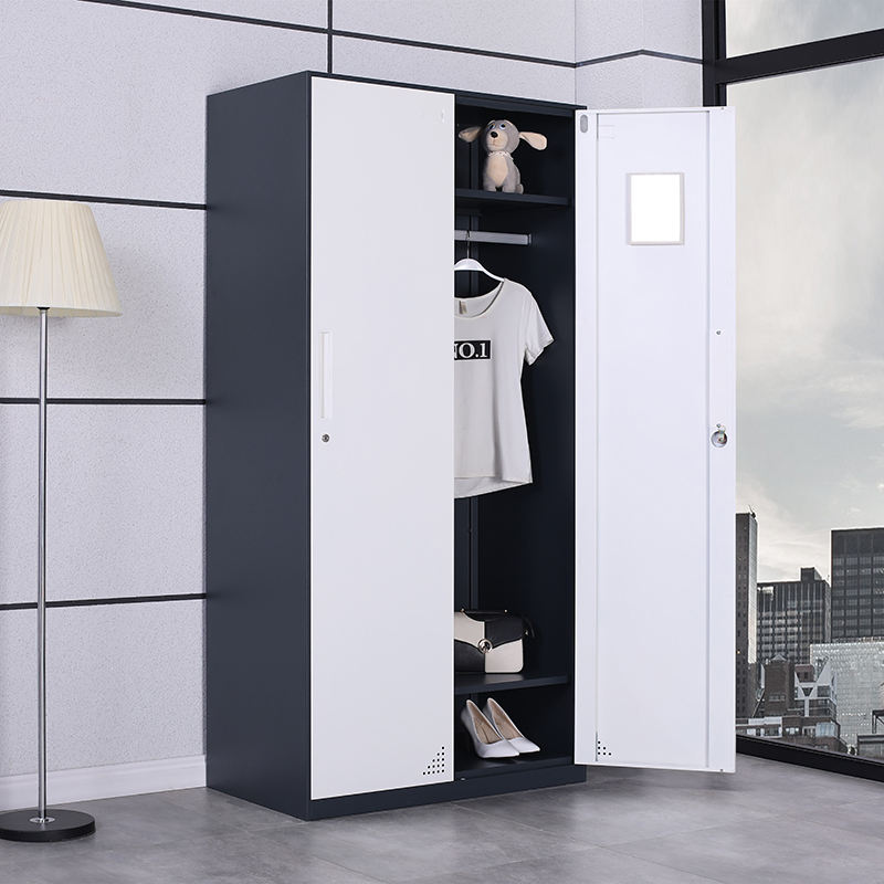 2 ประตูมัลติฟังก์ชั่โมเดิร์นตู้เหล็กเฟอร์นิเจอร์ห้องนอนตู้เสื้อผ้าตู้เสื้อผ้าพร้อมฉากกั้นและราวเสื้อผ้า