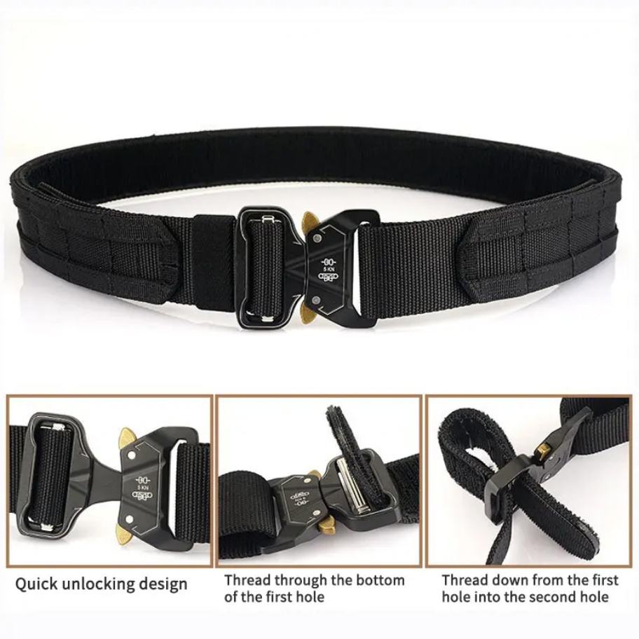 เข็มขัดไนลอนแบบยุทธวิธีขนาด 2 นิ้ว ทนทานสูง พร้อมตัวล็อคแบบปลดเร็ว ตัวล็อคแบบตะขอและห่วงโลหะ ตัดด้วยเลเซอร์ ชุดด้านในแบบ S สำหรับซองปืนพก
