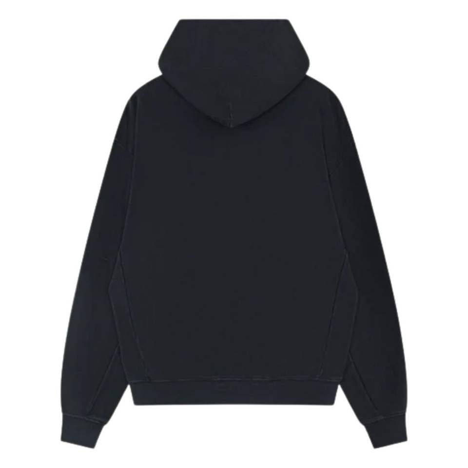 เสื้อฮู้ดดี้ผ้าริบเนื้อหนาสีดำล้างสี แขนยาว ผ้าฝ้ายนุ่ม สวมใส่สบาย สไตล์ลำลองสำหรับผู้ชาย ทรงพอดีตัว