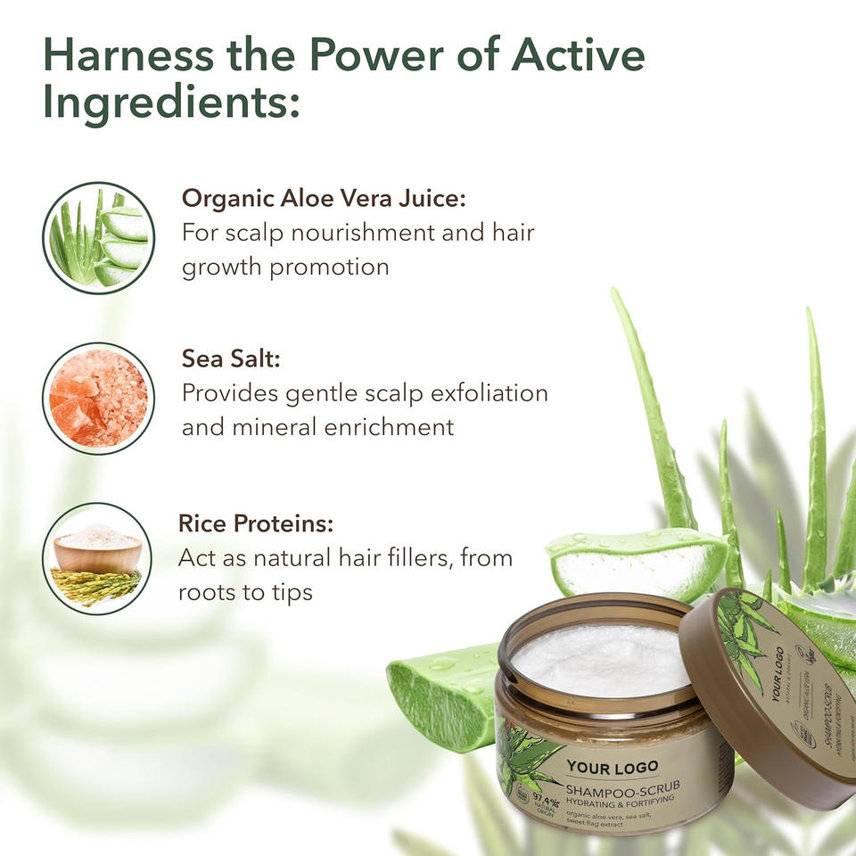 สครับและแชมพูว่านหางจระเข้ 2-in-1 ขจัดรังแค บรรเทาอาการคันและลอกเป็นขุย ช่วยผลัดเซลล์ผิวหนังศีรษะ กระตุ้นการเจริญเติบโตของเส้นผมให้แข็งแรง
