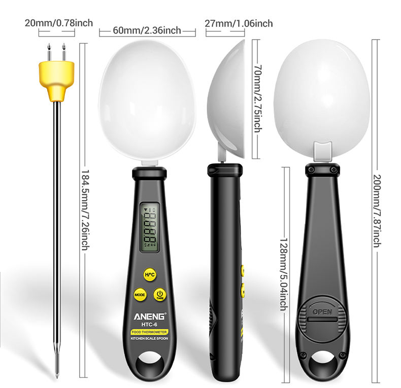2 In1 เครื่องชั่งครัวอิเล็กทรอนิกส์ LCD ดิจิตอลวัดอาหารแป้งช้อนดิจิตอลขนาด Mini สําหรับอาหารเครื่องวัดอุณหภูมิเครื่องมือครัว