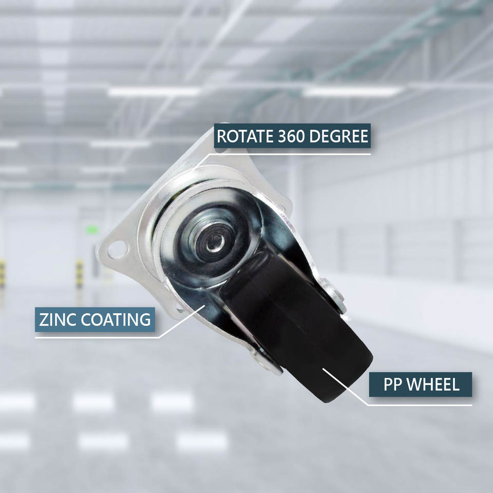 ชื่อผลิตภัณฑ์:ลูกล้อ PP สีดำ2นิ้วพร้อมแผ่นหมุนด้านบนลูกเหล็กเดี่ยว