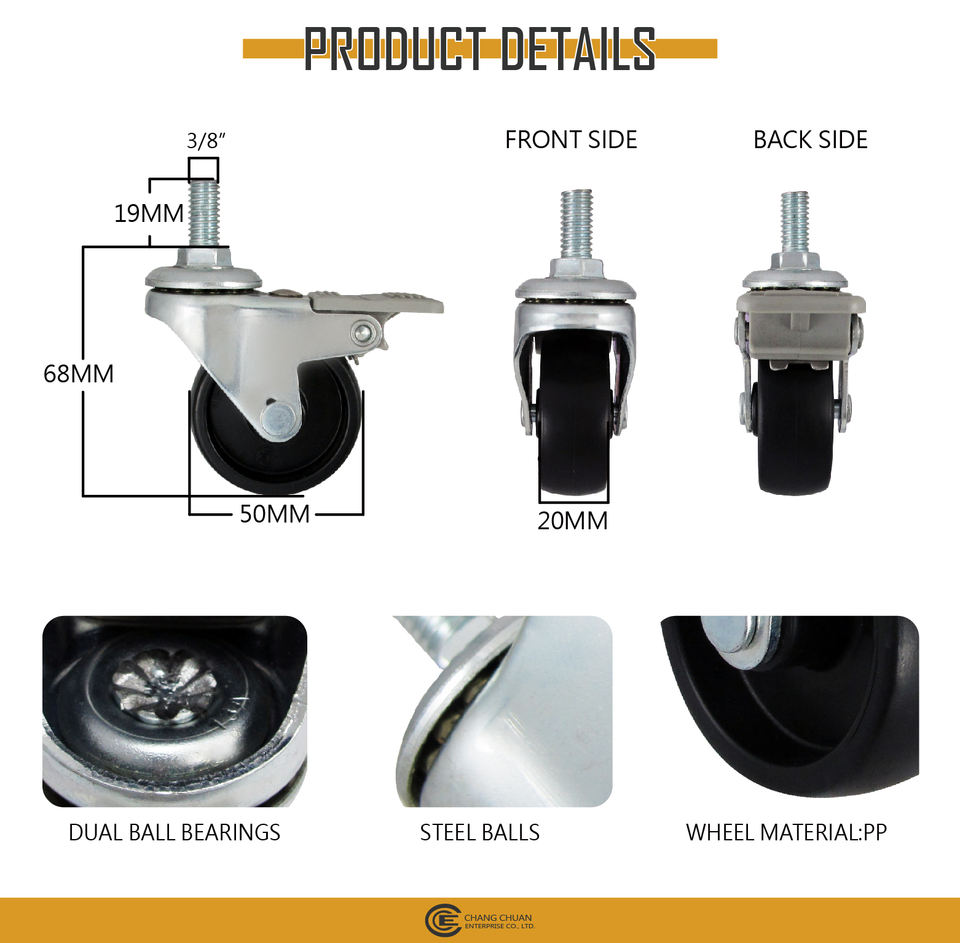 50มม. (2นิ้ว)เส้นผ่าศูนย์กลางล้อ